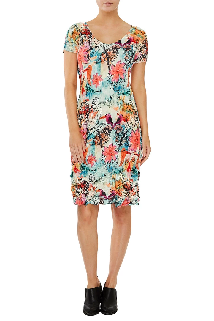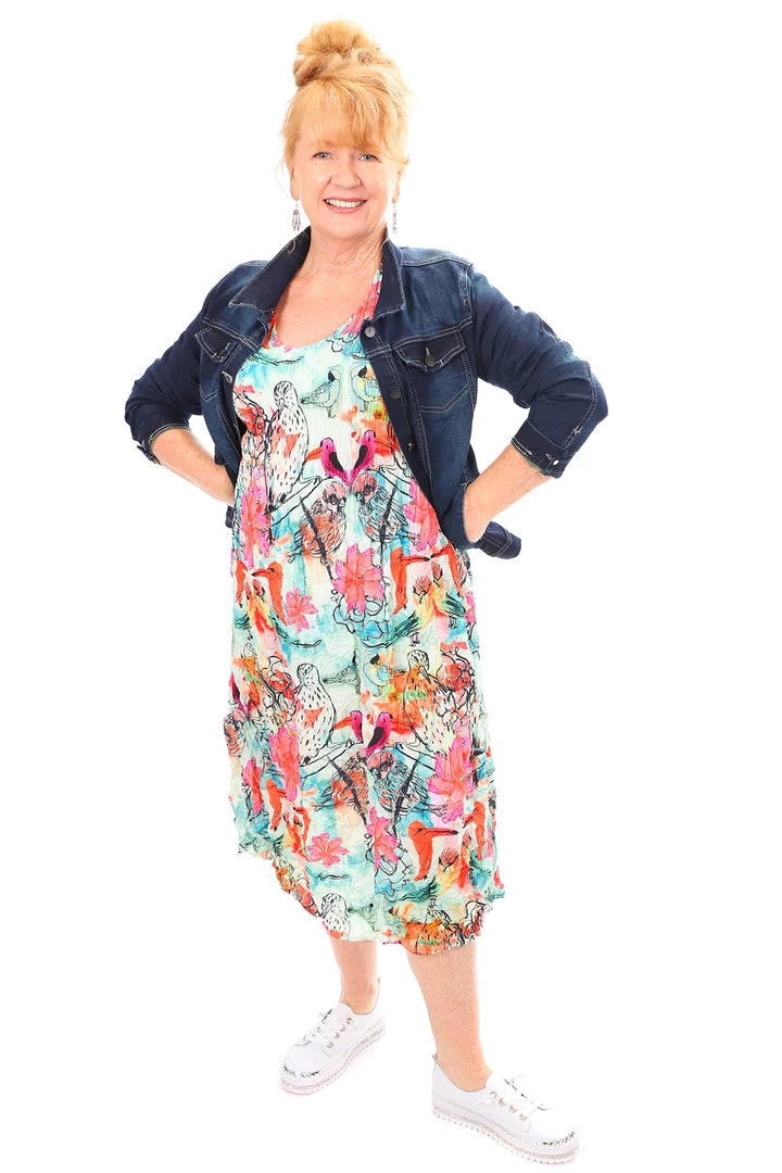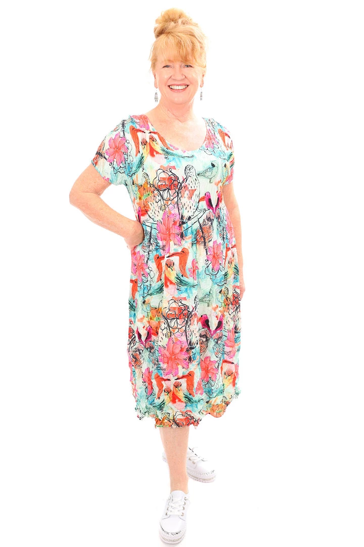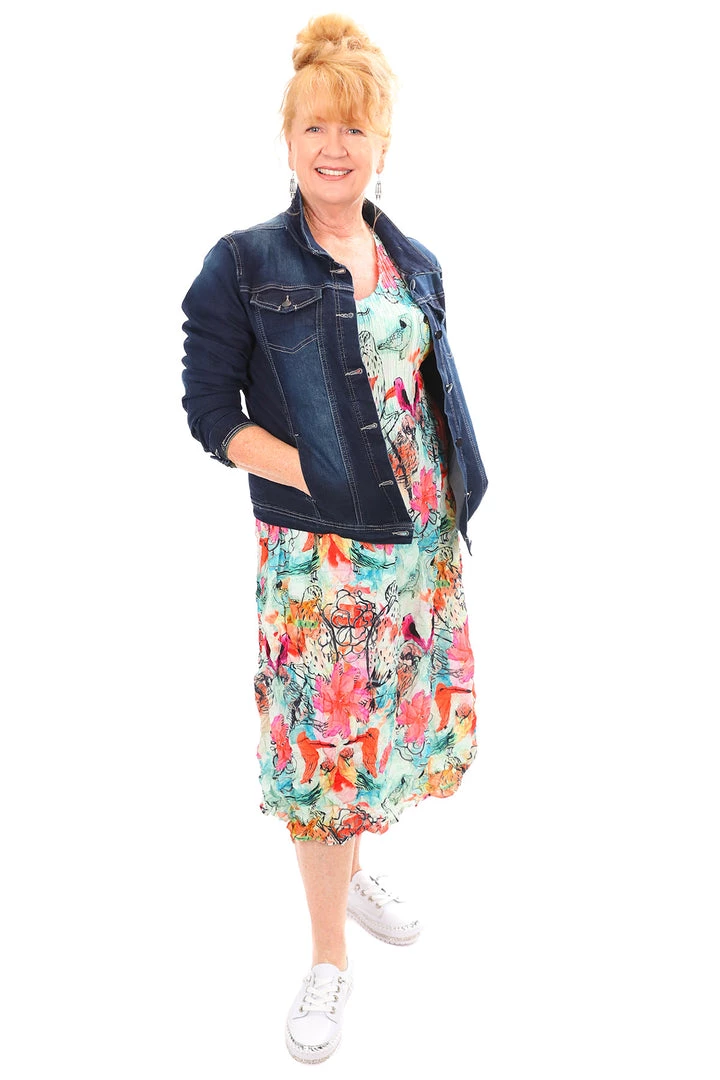 The Alquema range of luxury dresses offers a unique style to ladies. These dresses are super stretchy and the fabric allows for it to fit beautifully no matter what size you are. The pleating is elegant and the style makes it great under a jacket. This dress has two roomy pockets on the front. Team it with long boots and a leather jacket for a great casual look or go up a level and wear it as a dress with a chunky necklace, boots and a belt. This dress is perfect for travelling as it packs without a care! Your style will be right on trend for this winters fashions when you wear this great dress. Choose one of the vibrant colourful prints from the wide range of colours all in this great dress available at Pizazz Boutique.