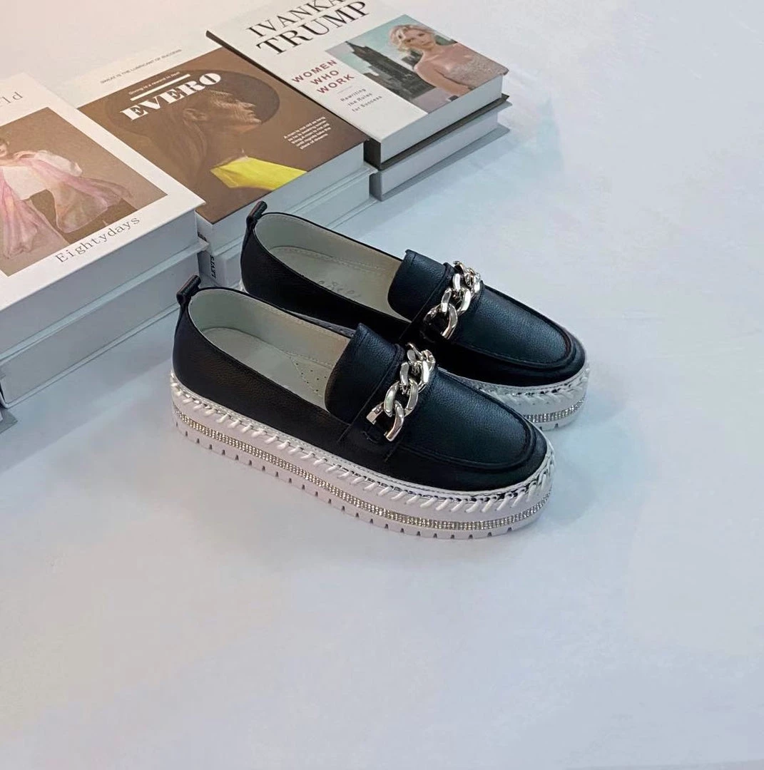 The Dion slip on loafer in black leather with add comfit & style to your wardrobe this season , The Dior slip on loafer will become your everyday shoe with touch of embellishment around the top of the soul & a feature chain across your foot this loafer shoes screams style.Â