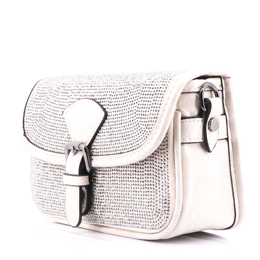 Add a touch of Pizazz to your outfit through your accessories this season, and do it with the Lindsey bag in Cream by Ameise! This rhinestone finished small handbag radiates glamour and style. The modern over the shoulder strap in black and cream gives and edge to the jewelled bag and adds an element of shine to your wardrobe. Perfect for day and night time use!