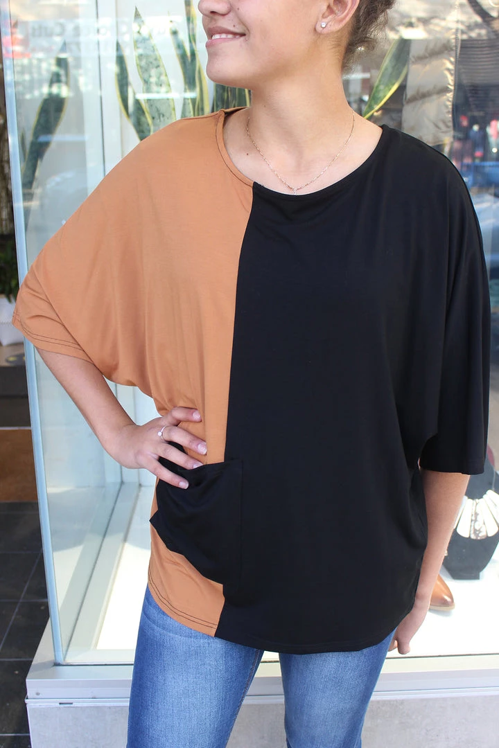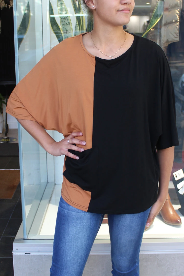 You can’t go past the comfort of wearing bamboo! This 3/4 sleeve top in two tone stretch bamboo is perfect for stepping out in comfort and style. This classic top with contrast pocket is the perfect top for workdays, casual afternoons and trips to the shops. Team this top with a legging and leather sneaker for a great winter look.