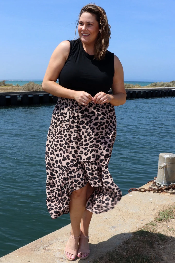 This beautiful, ‘ONE SIZE’Â maxi has been designed with a super elastic waist in 2 sizes to comfortably fit women sized 6 -14 and 16 – 22.Â