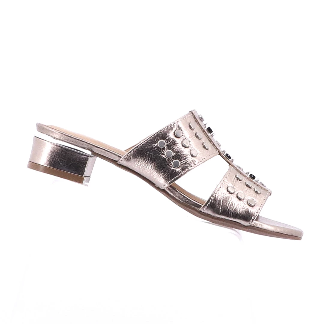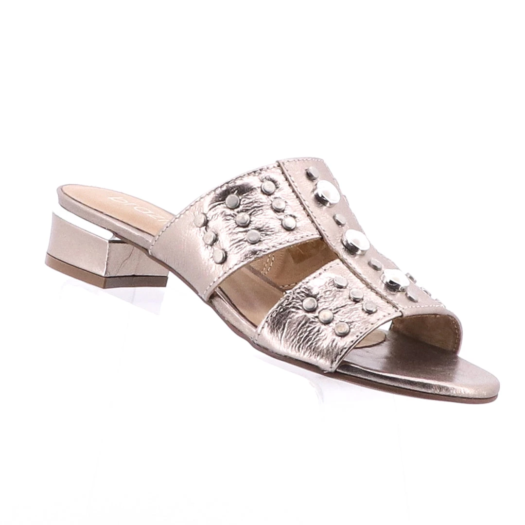 Change the way you walk through life with this amazing Nappa Glamour Slide in Pewter leather by Brazilio! The Nappa Glammour Slider heel is dripping with decadence through the silver and pearl studs across the foot! A modest heel to keep you comfortable all day and night with a hint of silver – your feet has never loved a shoe more! We think it’s time for a cocktail…