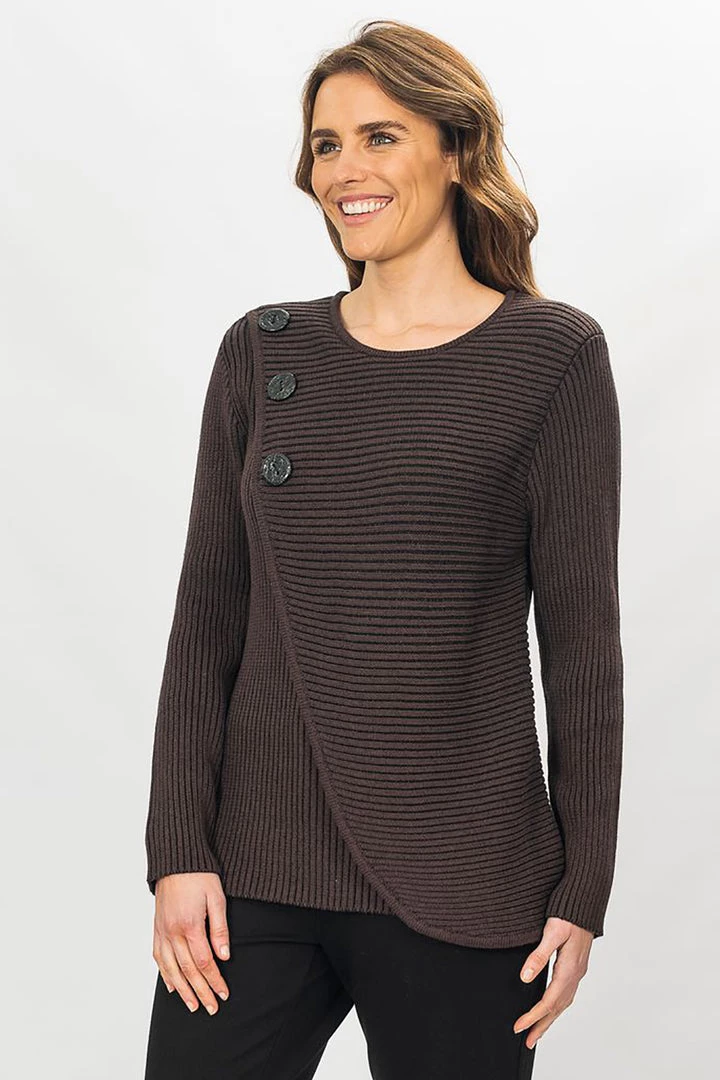 This blended knit offers comfort and style. The elegant cut drapes across the body giving a flattering line over the hips and waist. This knit is perfect for wearing over your favourite jeans and pairing with sneakers for a smart casual look that offers great winter fashion style.Â