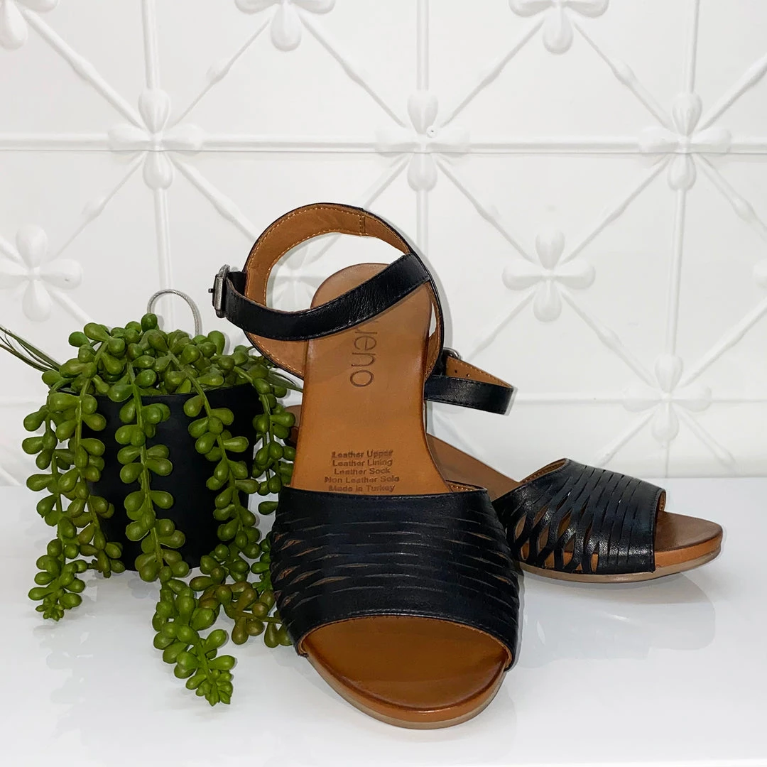 The ankle strap Judy Sandal features a low heal which is a great option for us ladies that like to walk in style under the star on a summers night.