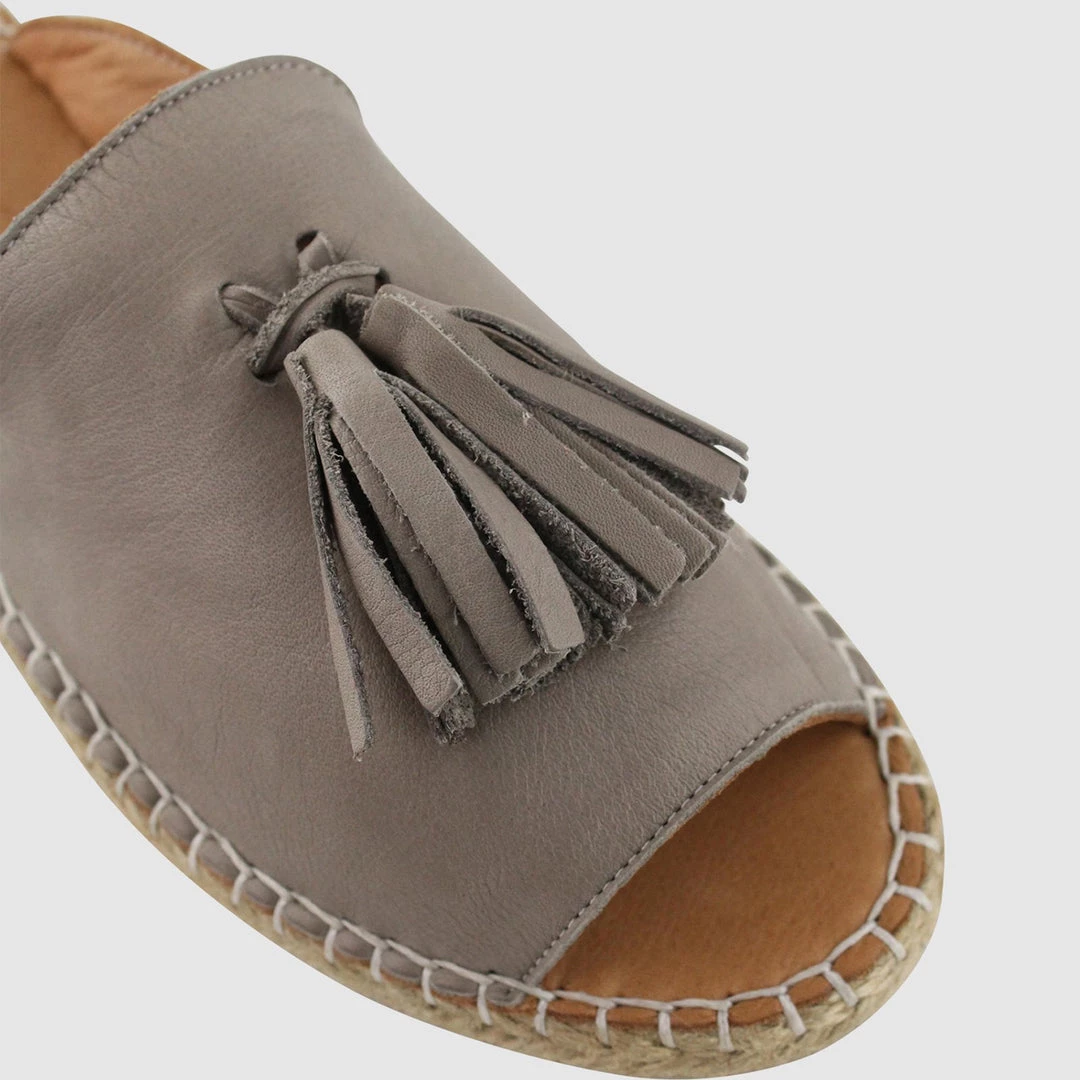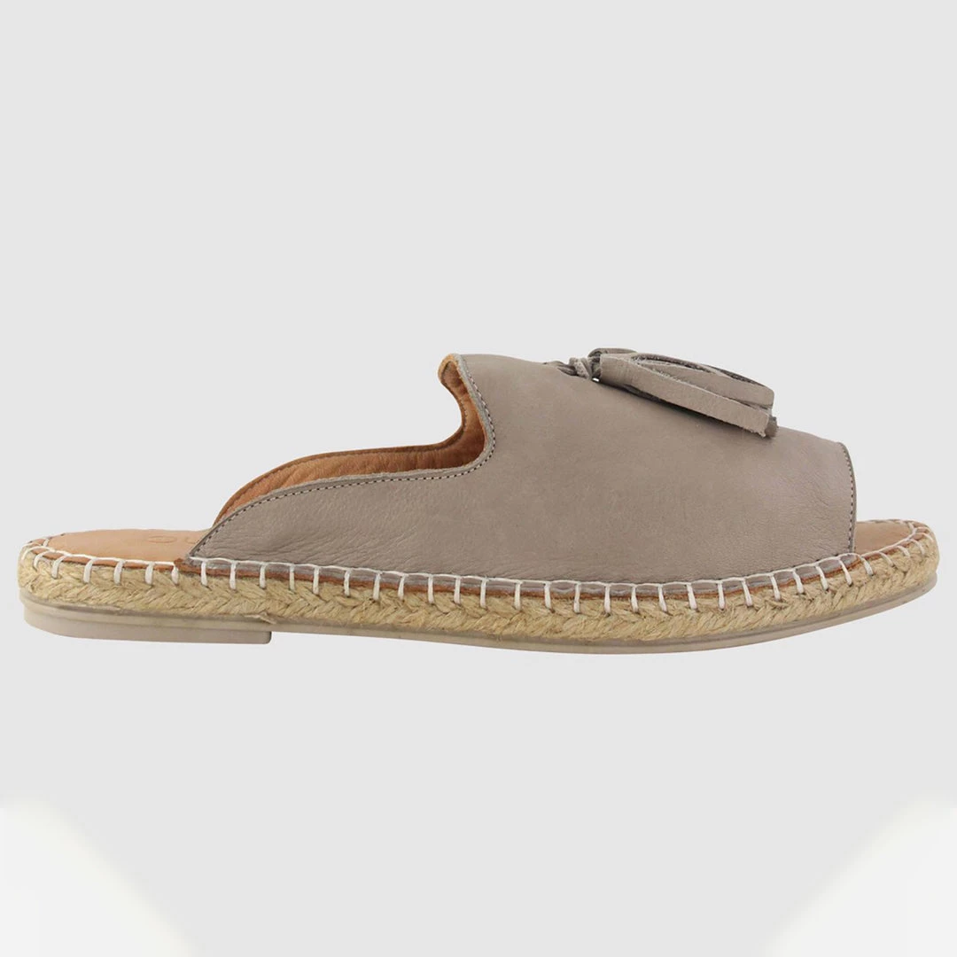 The beauty of a simple slip on espadrille never dates! The Keilor Espadrille in Dark Stone by Bueno is a must have Summer shoe for every occasion! Slip into the beautiful Turkish made leather slide with easy – the comfort and convenience is unparalleled! With an added touch of Pizazz through the double tassel feature you’ll love the quality and comfort of the Keilor Espadrille!