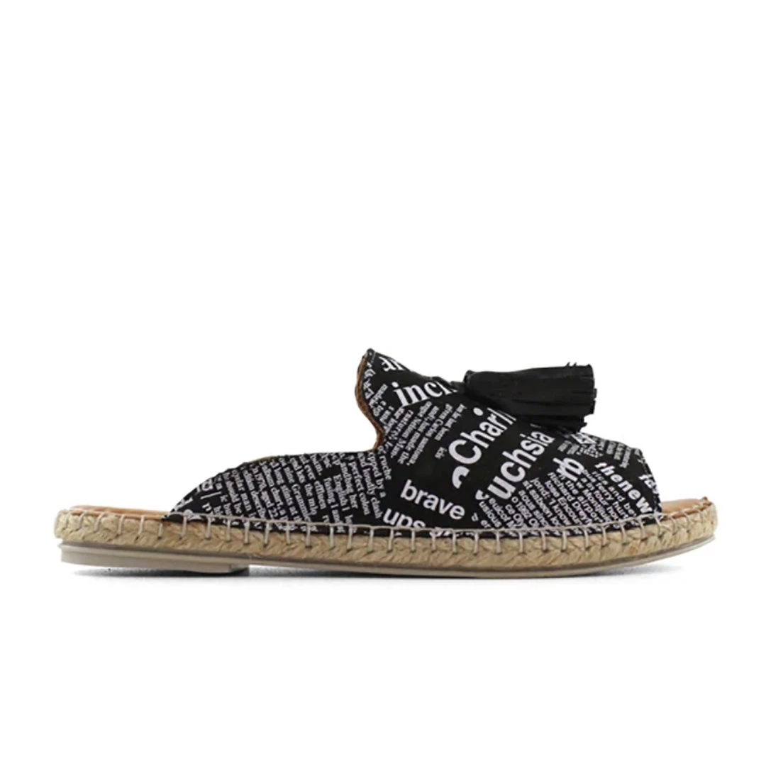 A must have addition to your wardrobe, Keilor by Bueno feature soft European leather, decorative tassle and an espadrille outsole. These slides are light weight, versatile and are destined to become your summer staple.