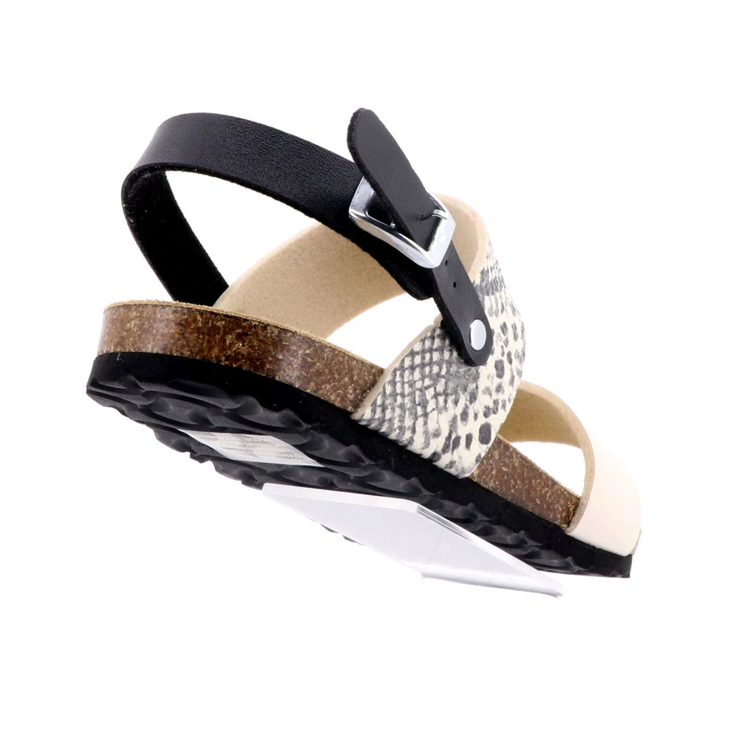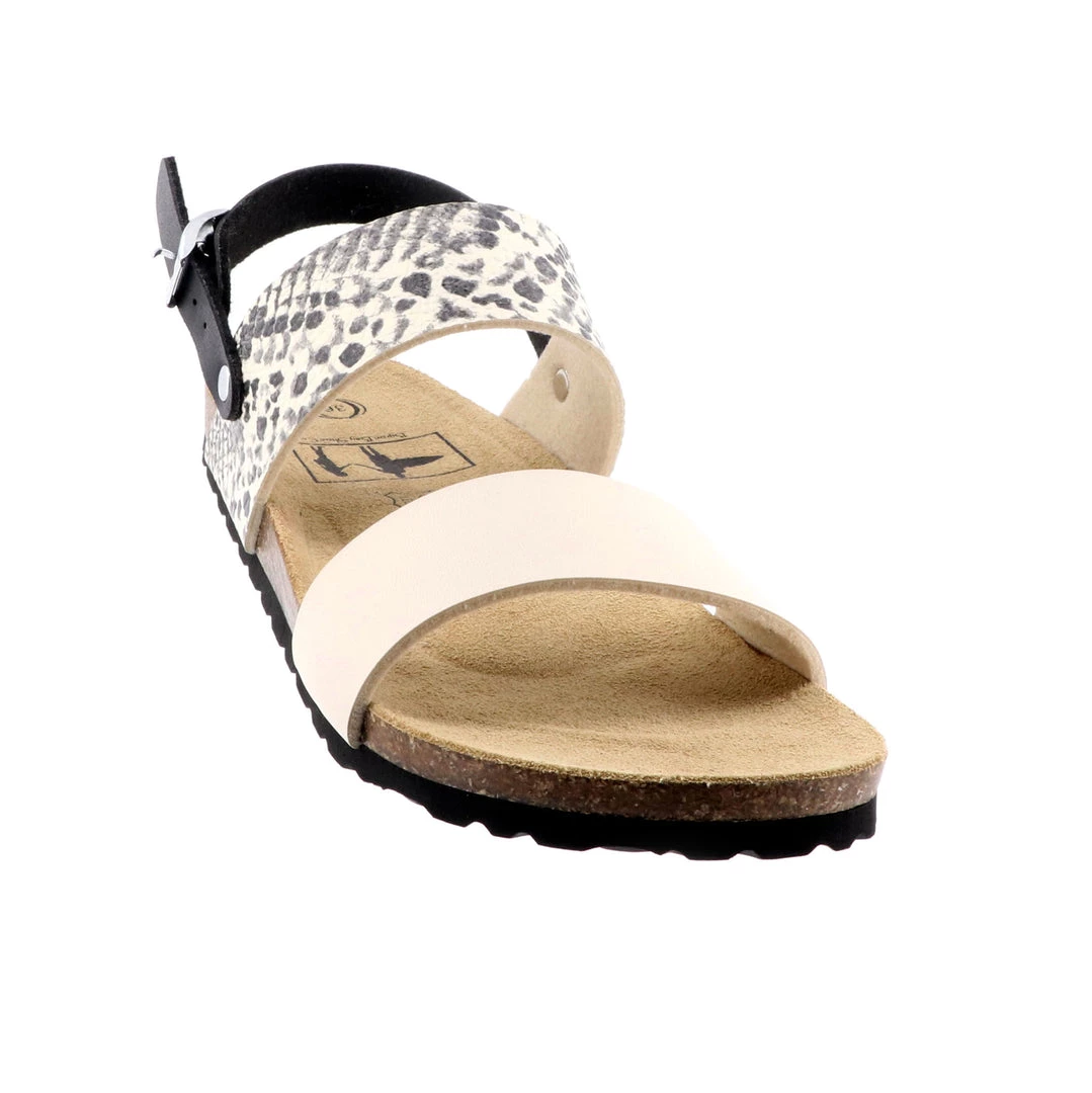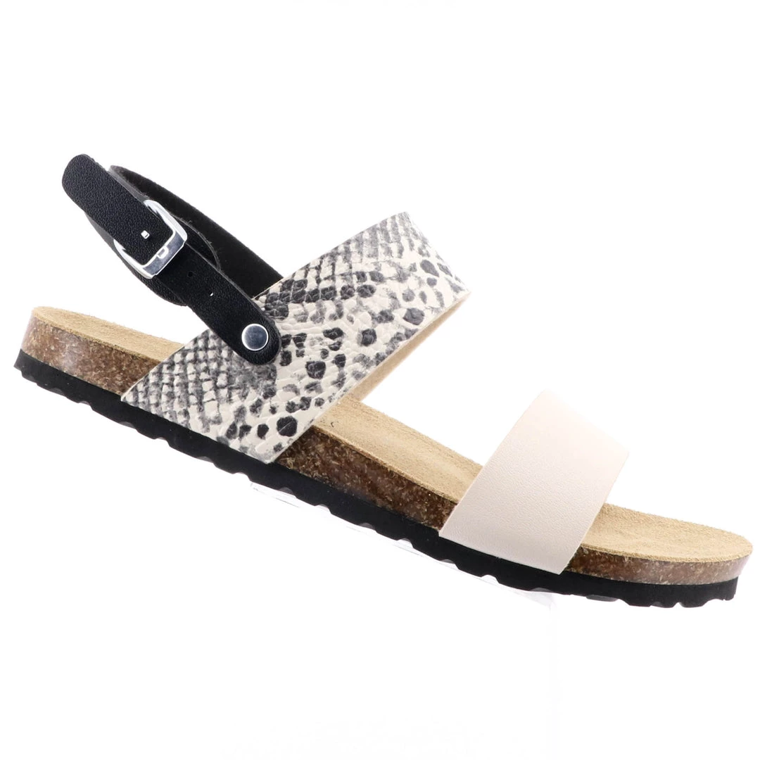 The Jasmin Sandal by Byron Bay Shoe Co is a simple yet elegant style that you could wear with just about anything. With one strap being snake skin pattern and the other strap being beige, these shoes become an accessory to your outfit. They would look exquisite with a pair of white jeans. These shoes are a perfect summer shoe.Â
