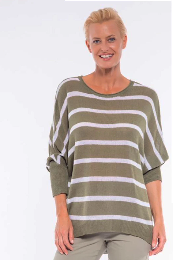 Comfort is the best kind of style! This stripe Navy Batwing Knit Top is designed for women who love quality and comfort!Â