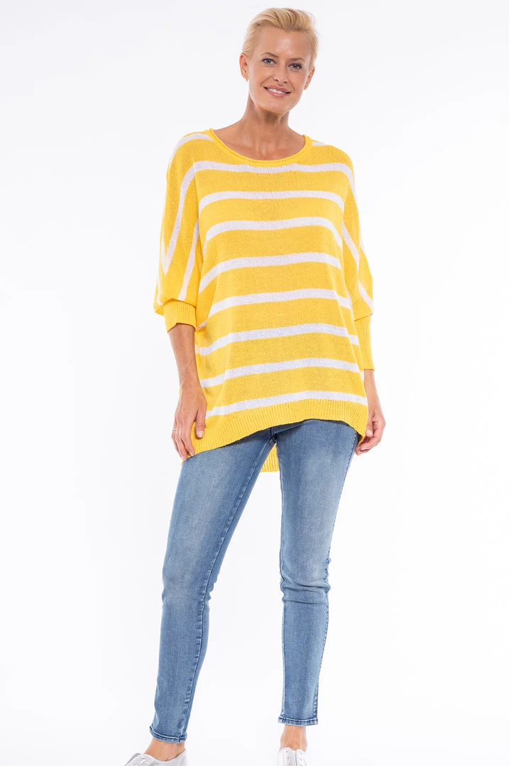 Comfort is the best kind of style! This stripe yellow Batwing Knit Top is designed for women who love quality and comfort!Â