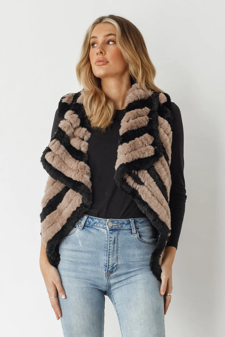You will be warm as toast and setting the style in this faux fur vest. Yes you can have fashion conscious fur! This vest creates the look fo fur in synthetic material. Team it with a long sleeve top, jeans and a long boot for a great winter fashion look.