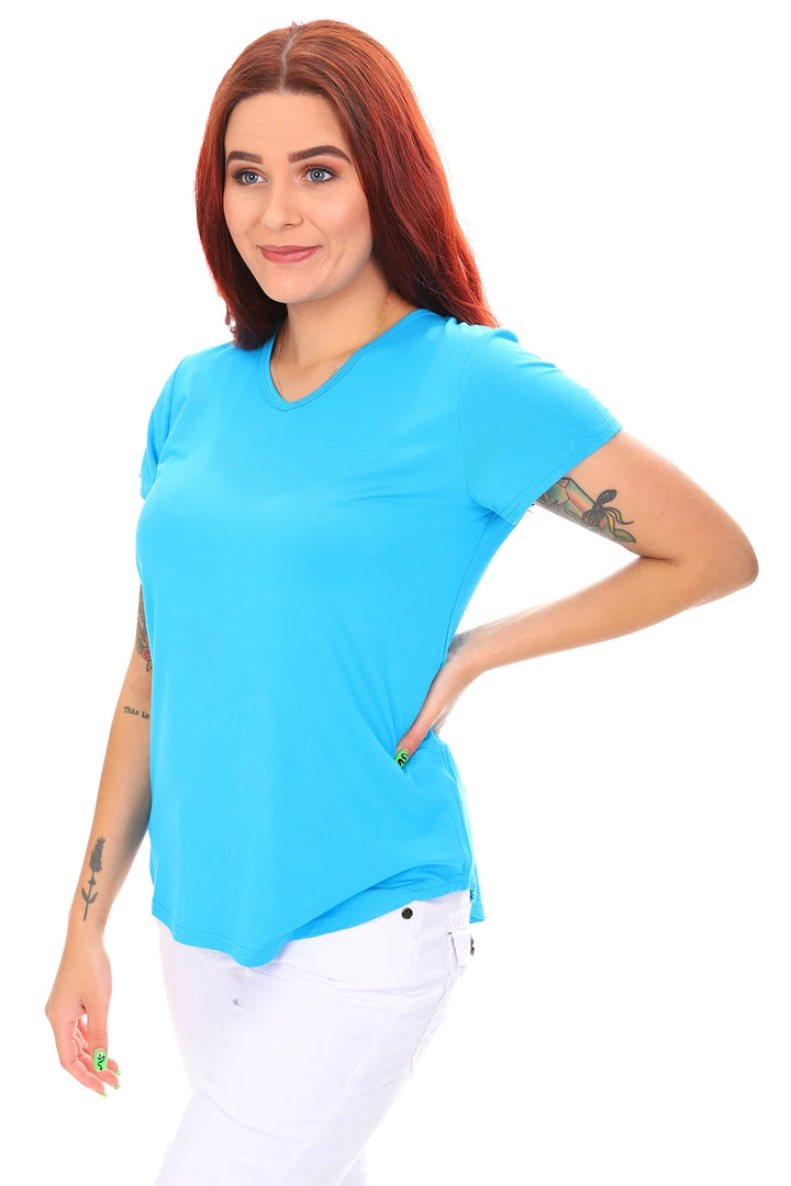 The aqua V neck bamboo tee by Whispers is a light weight, breathable basic to add to your every occasion wardrobe! With a short sleeve, fitted cut and comfortable stretch this aqua bamboo top is a must have staple for all days!