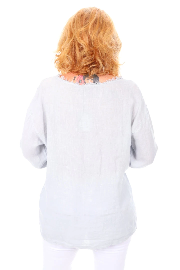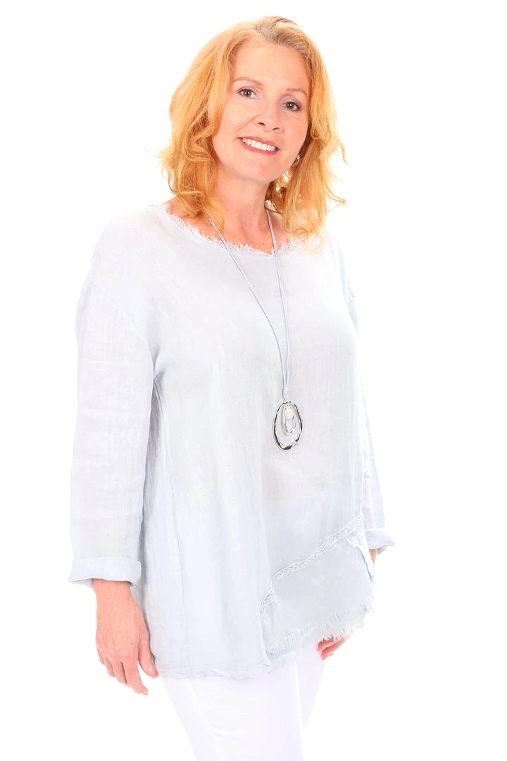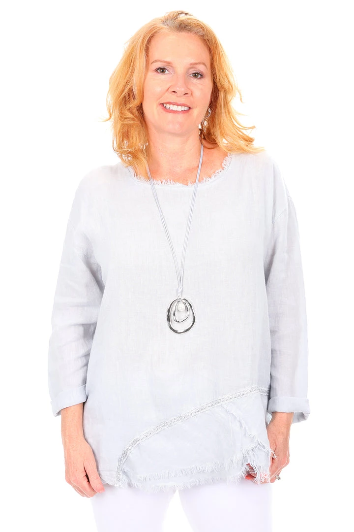 The Frayed Hem Linen Top in Grey by Cest parfait is here to make every outfit easy & low maintenance! With a relaxed fit and soft and breathable fabric this frayed hem top with detail silver stitching trim is perfect to throw on over linen pants or your favourite denim.