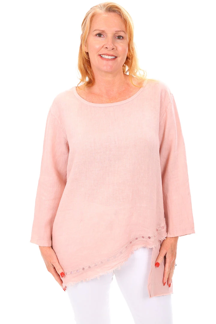 This Italian made cotton linen top offers casual designer style in cool comfortable cotton linen. The Cest Parfait Lazy Sunday top is perfect for casual weekends when you don’t want to sacrifice style for comfort. It has long sleeves which will chase off the evening chill and a great geometric hemline with a lace insert on the front. This one size top features darts at the bust making for a more tailored look. It measures 128cm at the bust. The Lazy Sundays Top is perfect teamed with a pair of loose linen pants or your favourite denim jeans. Add a casual slide for warmer days or a quirky pair of leather joggers for a stylish look that is at home at BBQ’s or out shopping.