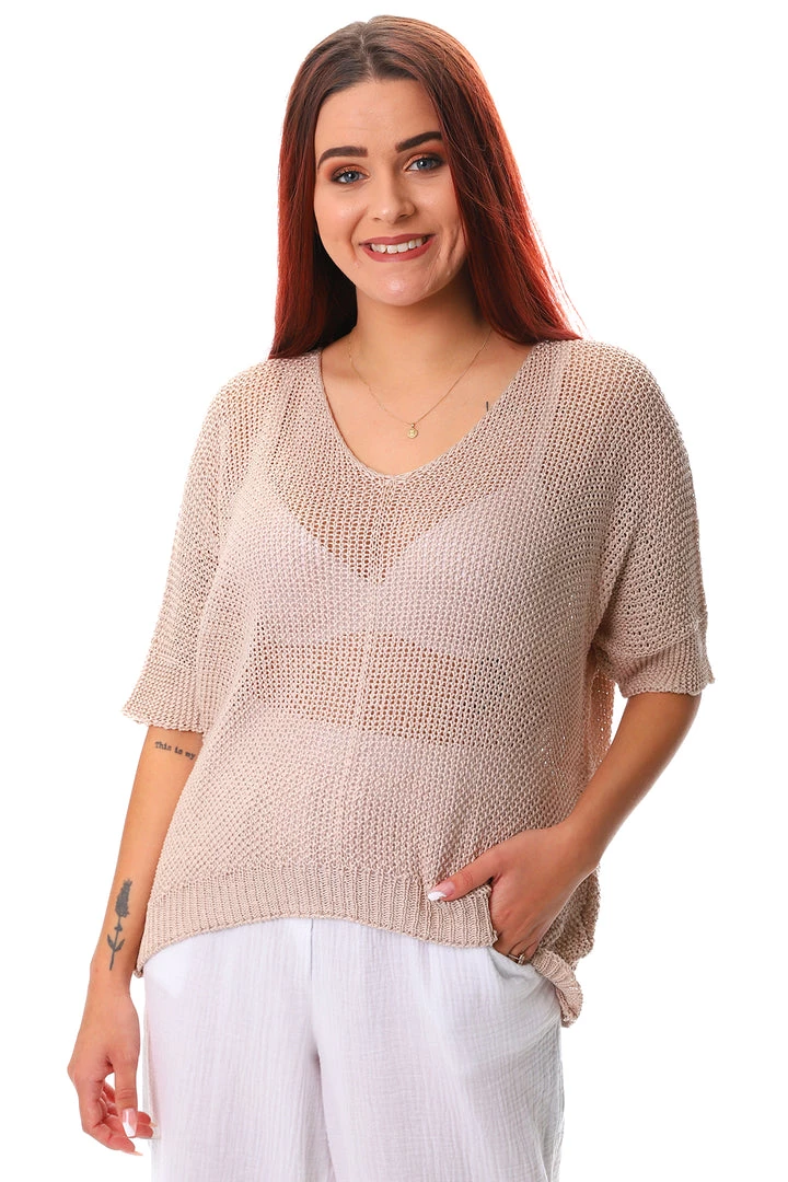 Fresh, feminine and versatile; thisĀ KnitĀ Top inĀ naturalĀ by Cindy G is here to serve & style you! Made from aĀ 100%Ā cotton this top is a relaxed fittingĀ pieceĀ that is as easy to wear as it is to fall in love with! The soft knittedĀ silhouetteĀ bounces nicely off the subtle V neck to create an effortless charm that is ideal to pair with linen pants! Perfect with a soft singlet underneath.
