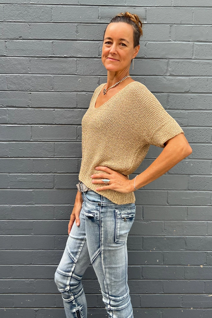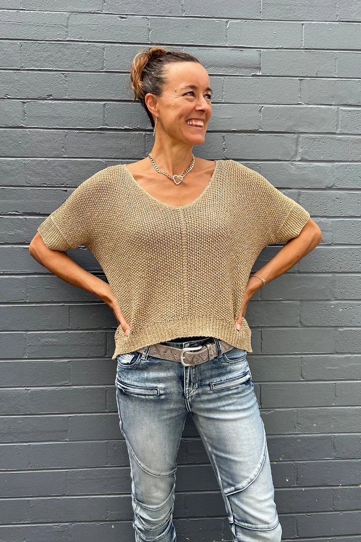 Fresh, feminine and versatile; this Knit Top in many different  by Cindy G is here to serve & style you! Made from a Viscose blend this top is a relaxed fitting piece that is as easy to wear as it is to fall in love with! The soft knitted silhouette bounces nicely off the subtle round neck to create an effortless charm that is ideal to pair with linen pants! Perfect with a soft singlet underneath.