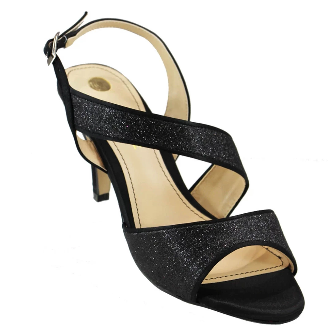 Blair by Clarice are the perfect sparkling strappy heels, easy slip-on wear with elasticized buckle closure ankle strap. The finishing touch to any outfit for all occasions.