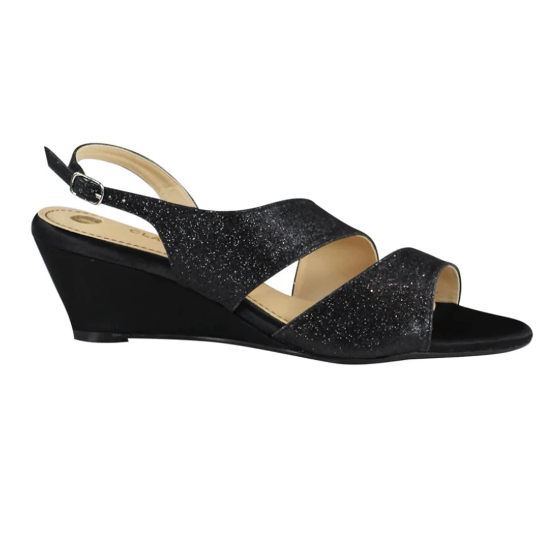 Outdoor wedding or event? Clarice has designed the perfect shoe, comfortable wedge with a touch of glitter to compliment your elegant outfit, just add a clutch bag.
