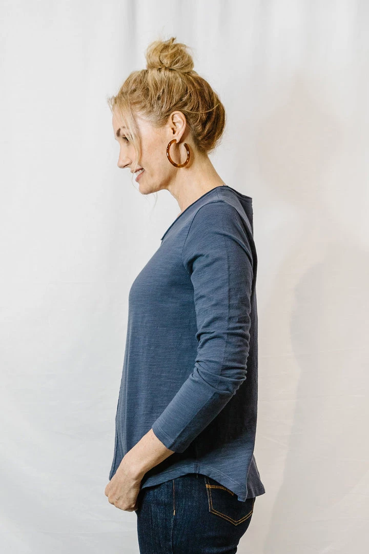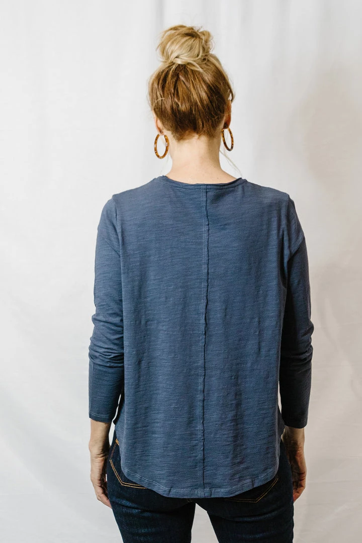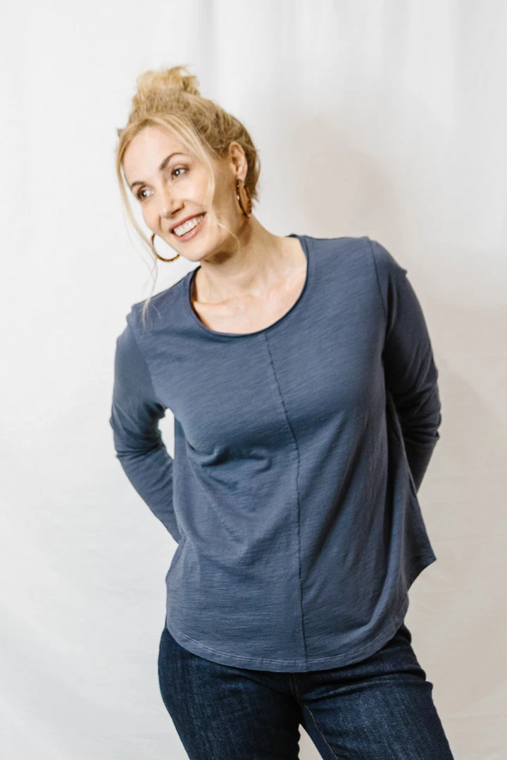 Introducing an iconic piece for your refreshed wardrobe! Cloth + Paper + Scissors have designed the Long Sleeve Tee in a versatile Slate colour! Complete with a soft V neckline and full length sleeve. Soft to touch and light to wear this beautiful cotton top is perfect for layering with jeans and joggers for an effortlessly casual aesthetic this season!
