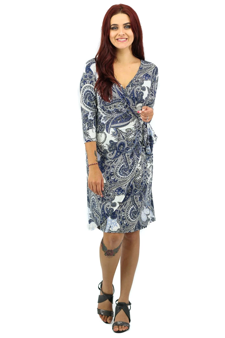 We love how the Eco Wrap Dress by Corsican contours and adjusts to your shape with it’s wrap-through fastening designed to honour your waistline and unique femininity! The three quarter length sleeve and knee length finish make this wrap dress the perfect blend of smart and casual. With plenty of stretch and a stunning paisley inspired print you will love this dress for years to come!