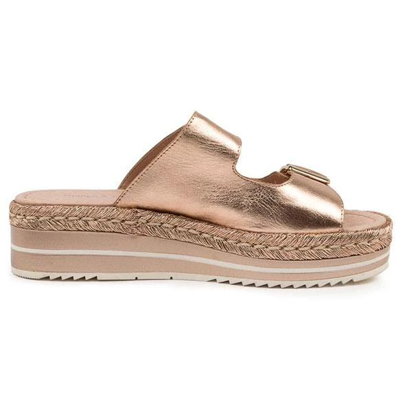 Buckle up and enjoy the ride! Perfect for those warm days by the beach or bar, this elevated design is just the style you need for simple summer sophistication. Set upon a two-toned flatform sole, with a touch of woven jute trim, this soft leather option features double adjustable buckles, which lend a fashionable and functional feel to the shoe. Style it with denim shorts and a relaxed-fit tee for an effort! Rose gold shown in photo