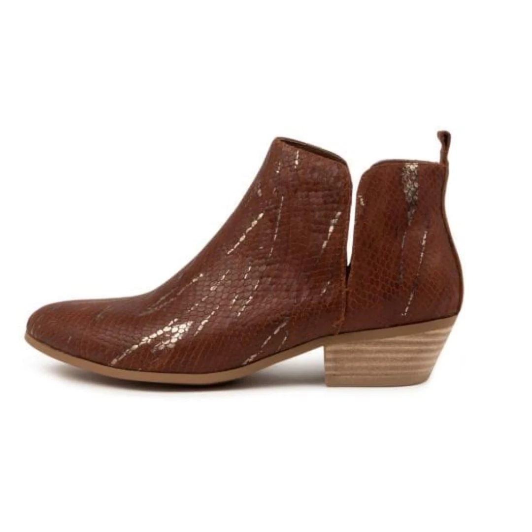 - Step on the contrasting textures trend with CASSIA by Django & Juliette, an embossed- leather boot with metallic trim that slips on with V-cut gusset detail. Whether you’re strolling the high street on a shopping trip or shuffliing papers at work, do it year round in style.