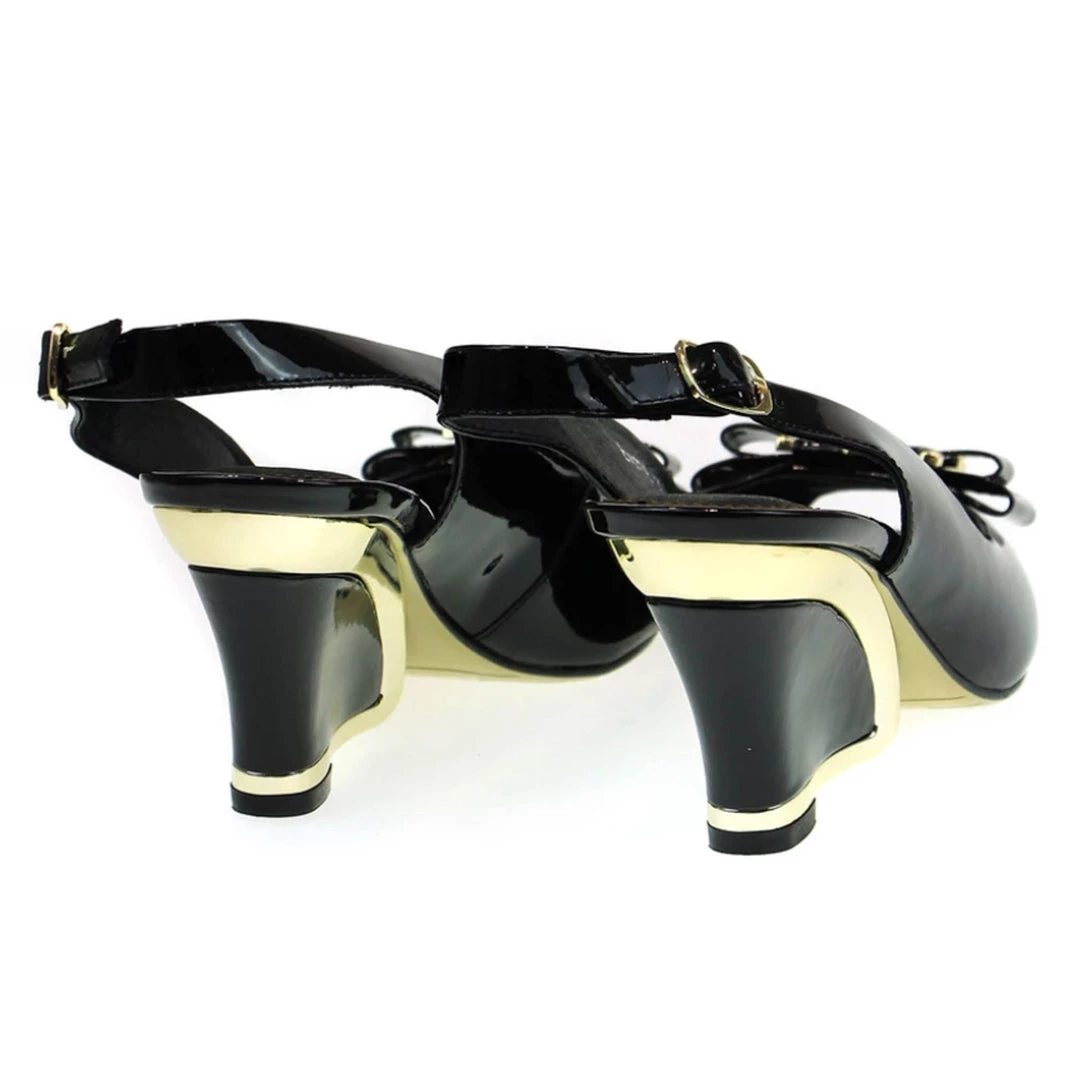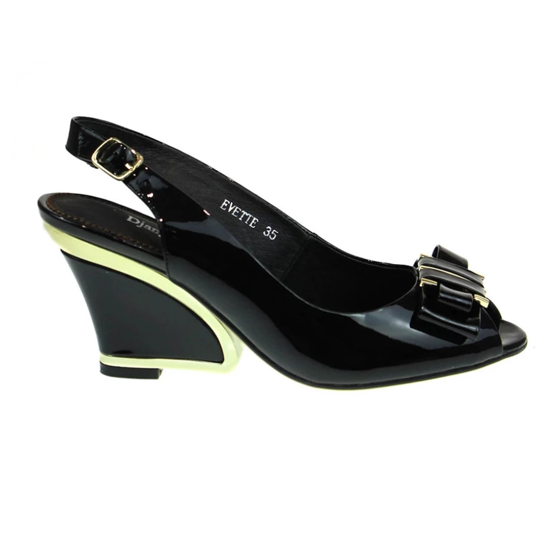 Take a bow! Django & Juliette have created the Evette with a shiny patent finish, this pretty shoe is great with pants, dresses and skirts. Being a wedge it is also an excellent shoe for any outdoor events that are on grass.