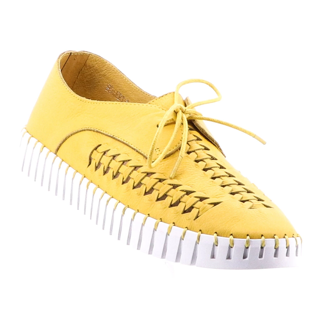 Walk the weave in the Hubert Lace Up Shoes by Django & Juliette! These Buttercup Yellow leather shoes have a spongey sole that soak up your steps as you create unforgettable memories! The soft leather has been woven to add a touch of Pizazz to these every day delights! Unparalleled comfort and a splash of quirk make the Hubert shoe a must have this season!