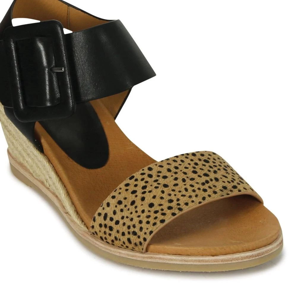 You’ll enjoy all-day support with this espadrille style wedge. Modern styling of todays top trends marries in the Empathy with genuine leather and quality craftmanship. Pony hair leather over the toe and Strong leather ankle strap and large buckle keeps you secure. Wear with any outfit, smart or casual.Â