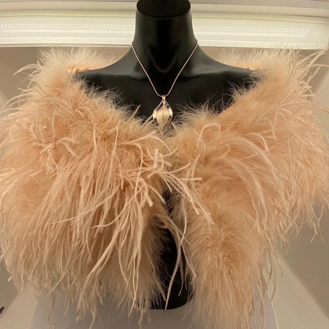 The stunning Ostrich Feather Shrug is perfect for all occasions with its classic style, this designer piece is comfortable to wear, wrap the shrug around your shoulders to take yourself to the next black tie, cocktail night or any function as you will turn heads for all the right reasons.
