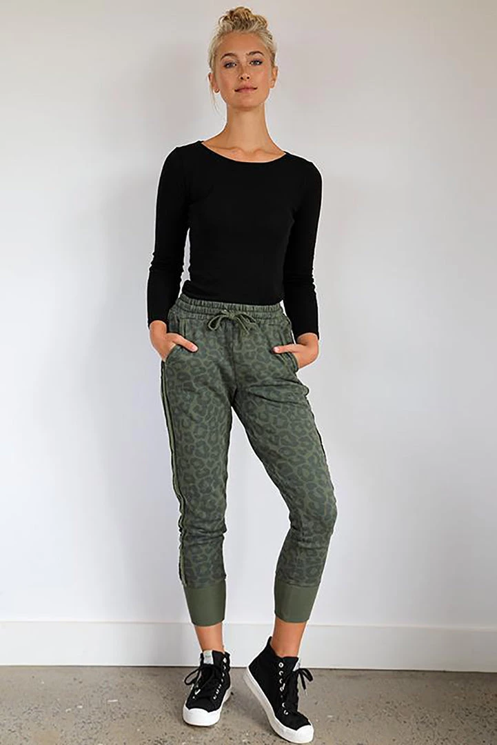 Want a track pant that has a great booty fit? These Tracky pants by Est 1971 give you just that! With frayed cotton drill on both sides these leopard print pants are not just a pair of Tracky’s they are so much more! They look great teamed with a Windy or your favourite winter knit and sneakers.