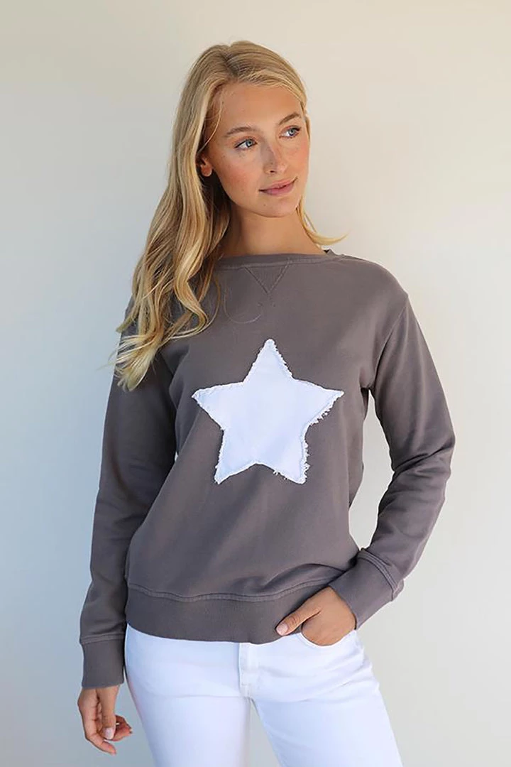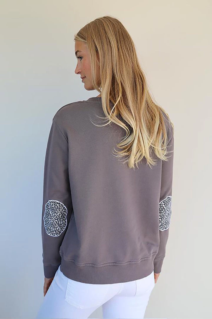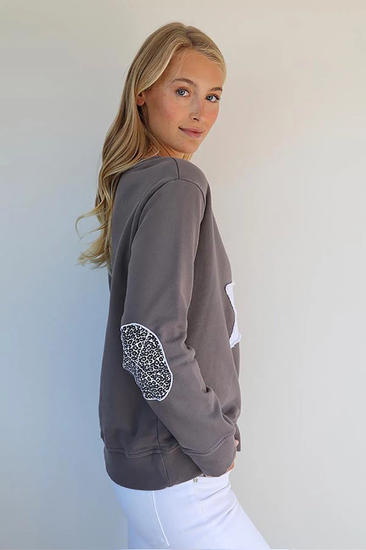 The Leopard Star 100% cotton Windy features a frayed star appliquĂ© on the front and  EST 1971 signature elbow patches in a contrasting leopard print.Â