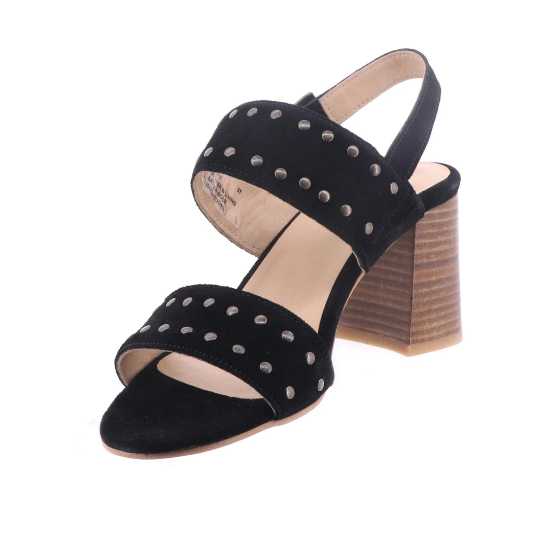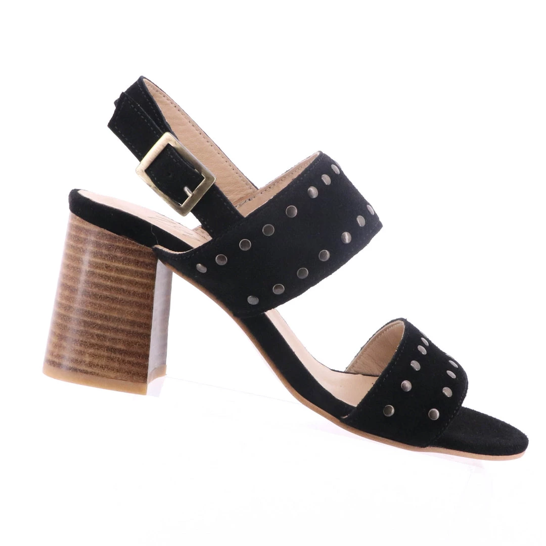 The Miley heel by Florsheim is the perfect shoe for a night out! With a large block heel this shoe comes with comfort and stability. Florsheim has beautifully designed this shoe with stud features, black suede & a wooden heel.