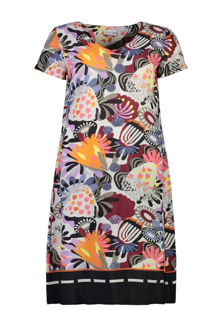 Spring into summer with this beautiful shift dress by Foil. Add a pop of colour to your day. Capped sleeve and below the knee in length.Â