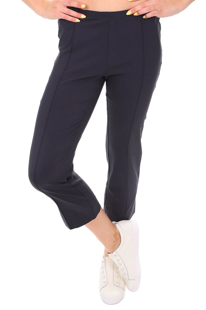 A must have pant for summer- the divine light weight fabric of the Signat 7/8 Trapeze Pants in Dark Navy keeps you cool, elastic waist band for comfort and easy pull on style. Designed for women all over the world, and guaranteed to go with everything in your wardrobe!Â