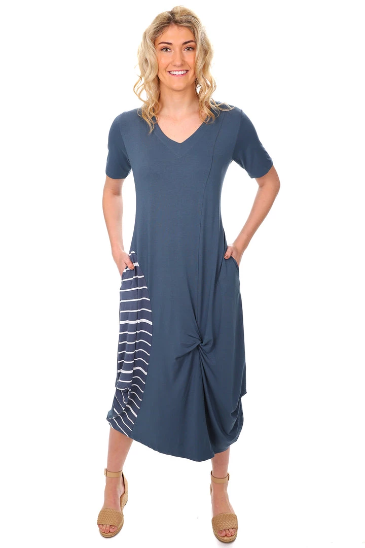 Fill your life with Foil with their classic Soft Focus Twist Dress in urchin and white. This spectacular cotton dress by Foil brings versatility and comfort into your life through the soft touch fabric, classic blue and white stripe and easy going silhouette. With a rounded neckline, below the knee finish and t-shirt sleeve, this Foil dress is the ultimate casual choice for any event!