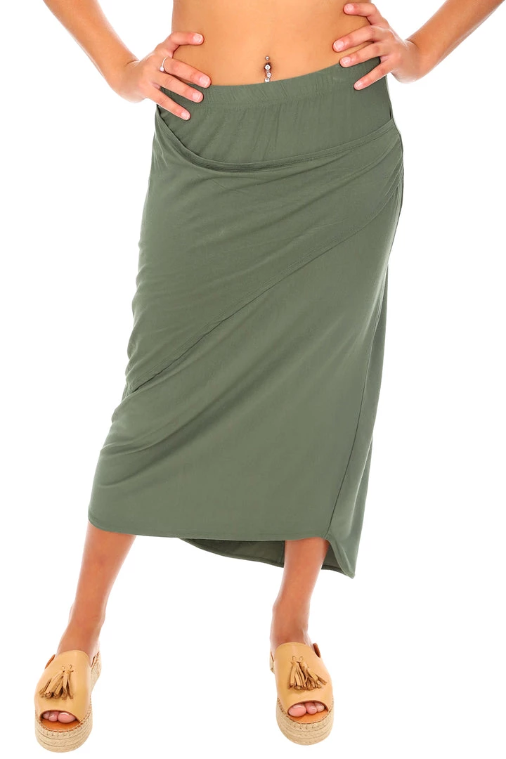 This deep green jersey skirt by Foil is a gorgeous – the Subtle Statements Jersey Skirt in Havana takes a beautiful wrap feature to flatter all figures. Perfect with a cotton tee and boot or sandal!
