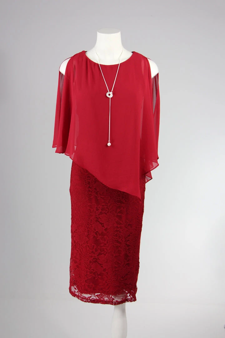 Romance is iconically red for so many beautiful reasons….and this stunning dress is one of them! Corded red lace reaches out to the eye from beneath a sheer red overlay making this Four Girlz gown a summer romance all in its self! Â