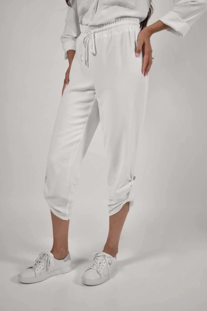 These white woven pants are a wardrobe must have feel snazzy and fancy in this fit, these pants are a relaxed fit with a tie waist.