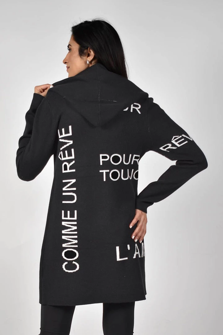 The Cover up Knit Jacket from Frank Lyman is a must have this season, This knit cover up jacket shows the unique style of Frank Lyman designs, The cover up knit jacket is a great length, with a hoodie attached and side pockets on the front.