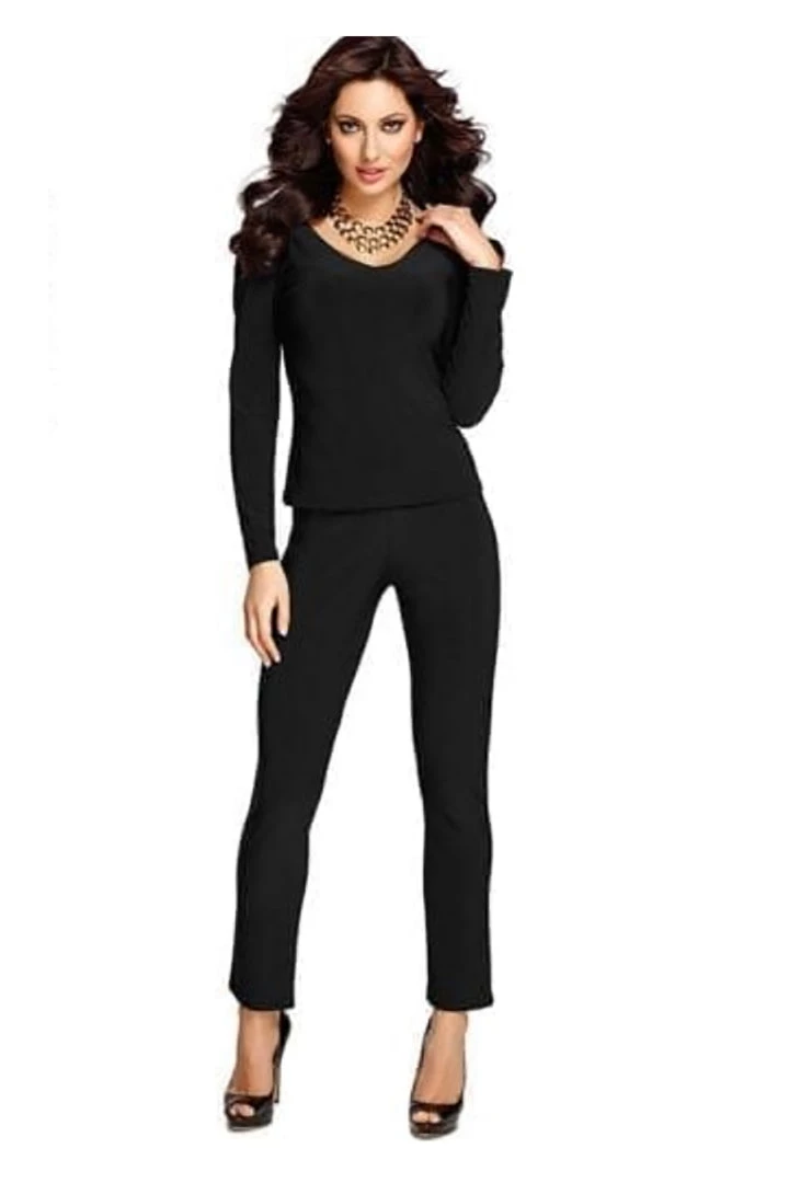 Every woman needs a pair of great black pants which she looks and feels great in. These black dress pants by Frank Lyman were designed and made in Canada. They fit beautifully and are easy wear easy care.Â