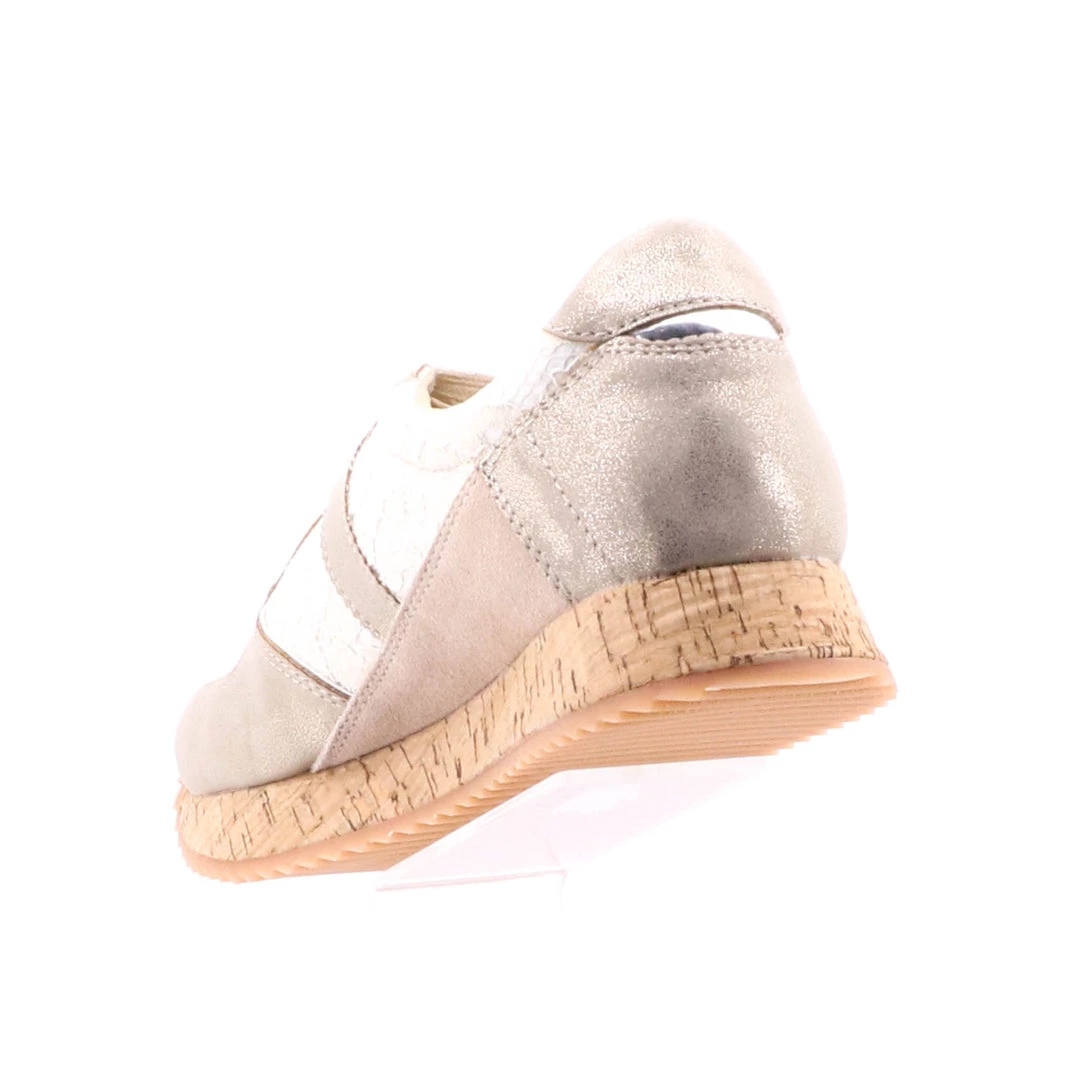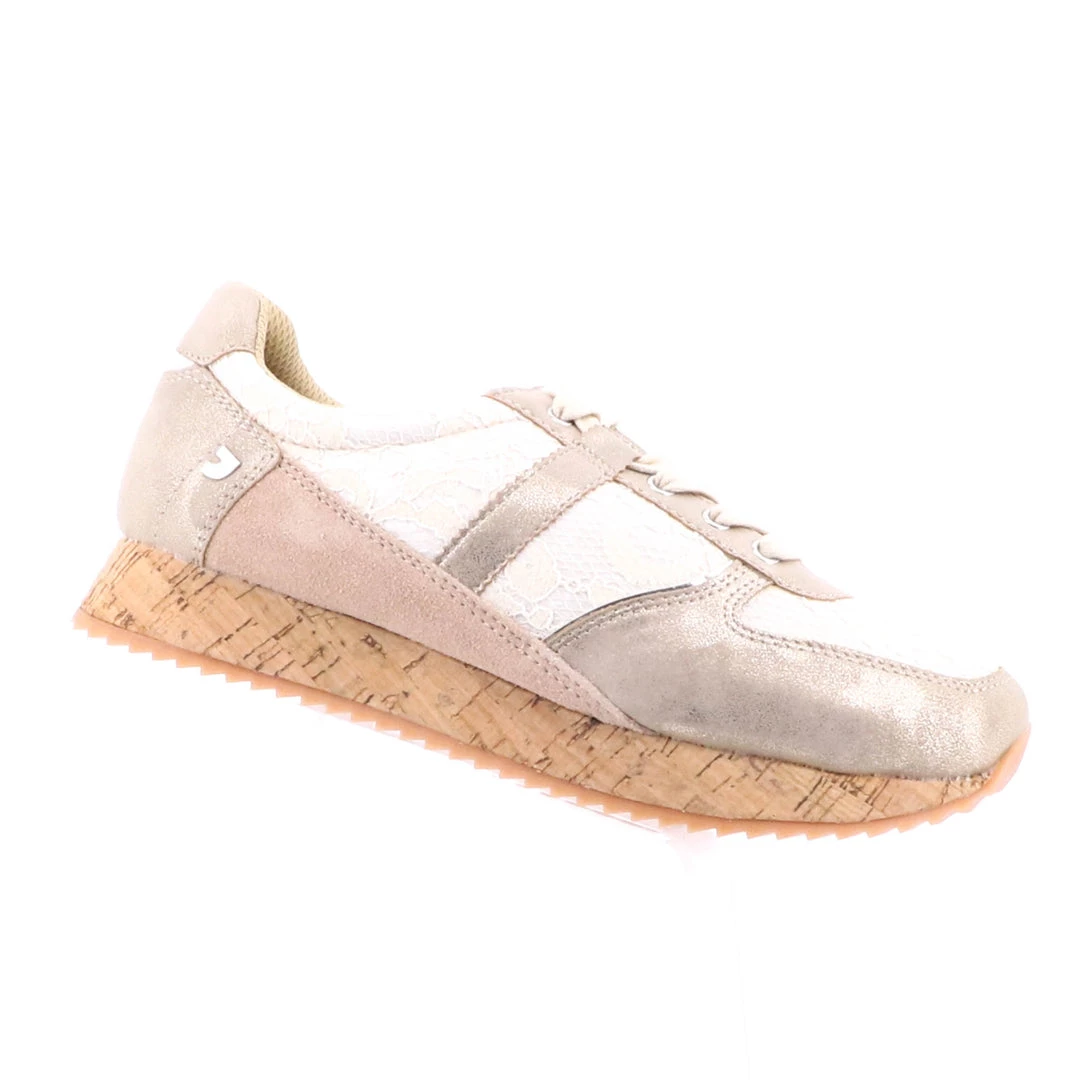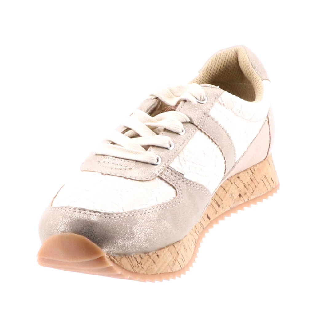 Metallic beige sneakers with cream lace and different textures details. Closing with laces. Thick cork and rubber sole. Upper, lining and insole in synthetic material. A touch of comfy glamour to your looks.Â