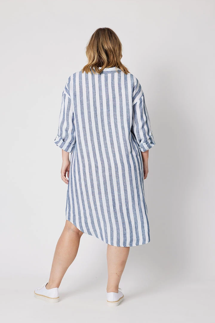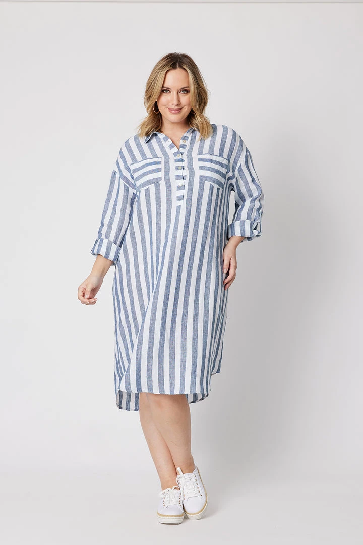 Are you a linen lover, this dress is for you…Â with a button up sleeve and styled in a quality pure cotton stripe. Perfect for day with trainers, or add a pair of wedges and a denim jacket for a girls night out!Â