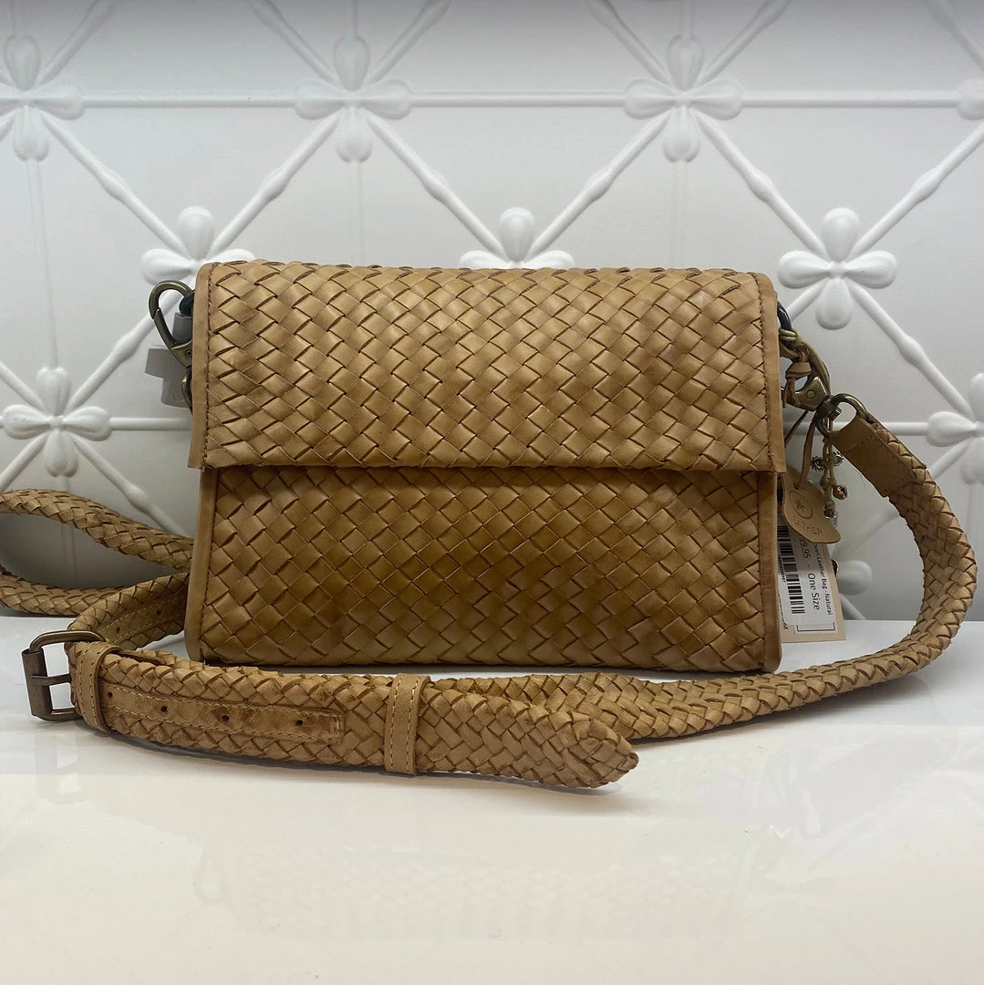 This fun woven bag by Human Premium with a wide woven strap is perfect for days when you are on the go! The leather is beautiful and soft and this natural tone will complement your look.