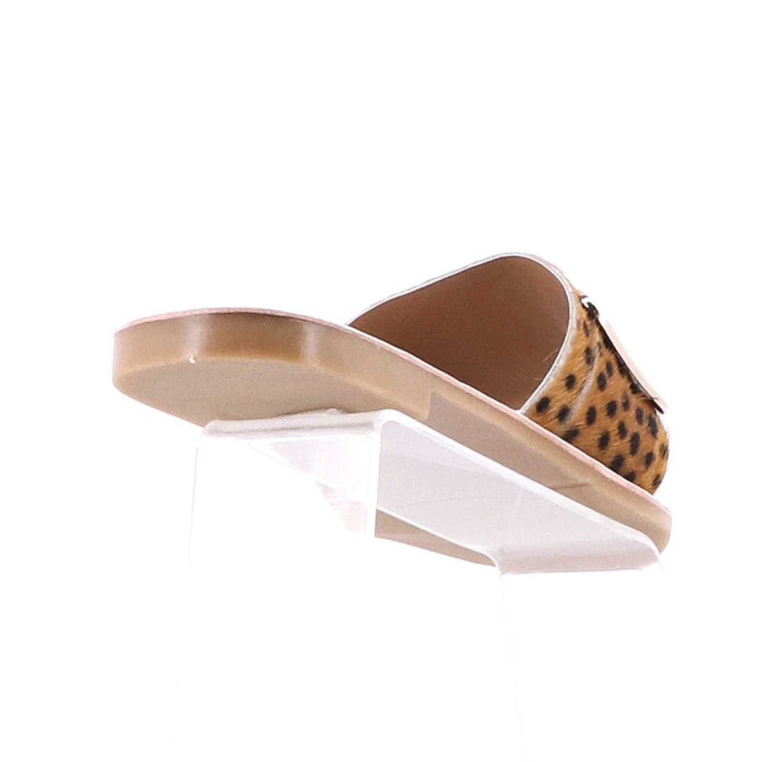 Never have a difficult time choosing shoes again with the Zion Slide in Cheetah print calf hair by Human Shoes. Made from genuine leather these slip on, flat soled sandals have an across the foot strap in calf hair that is lifted by a buckle for a touch of Pizazz. These slider sandals are easy to slip on and take on the world in this season!