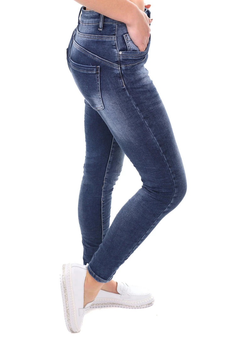 In the market for a new and innovative pair of jeans? The Pocked Detail Jeans in denim blue by Italian Star have qualities so appealing you’ll want more than one pair! The soft touch fabric is comfortable to wear, the pockets are practically deep and the button up front eliminates always having to check if your fly is up. With a fitted leg and a mid rise you’ll feel comfortable, supported and confident with every wear!