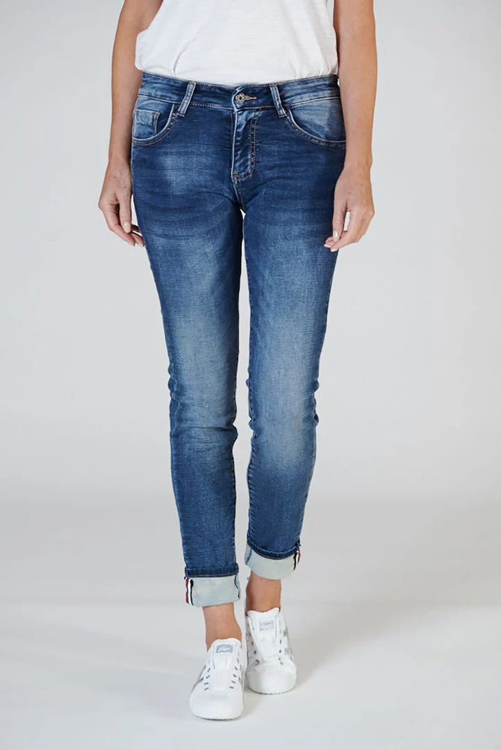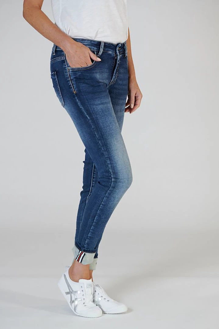 These polo jeans by Italian Star are perfect for casual days. No one will know just how comfortable you are wearing these denim polo jogger jeans with a hint of “Polo” on the side seams with a highlight trim featuring bold red, white, navy and red stripes on the reverse side which show your style when you turn up the cuff on these great pants. Team these with your favourite knit and a pair of red leather sneakers for a look that you own.
