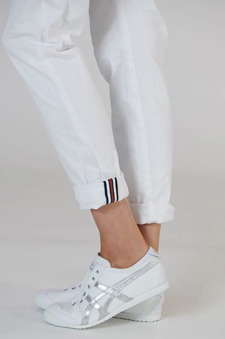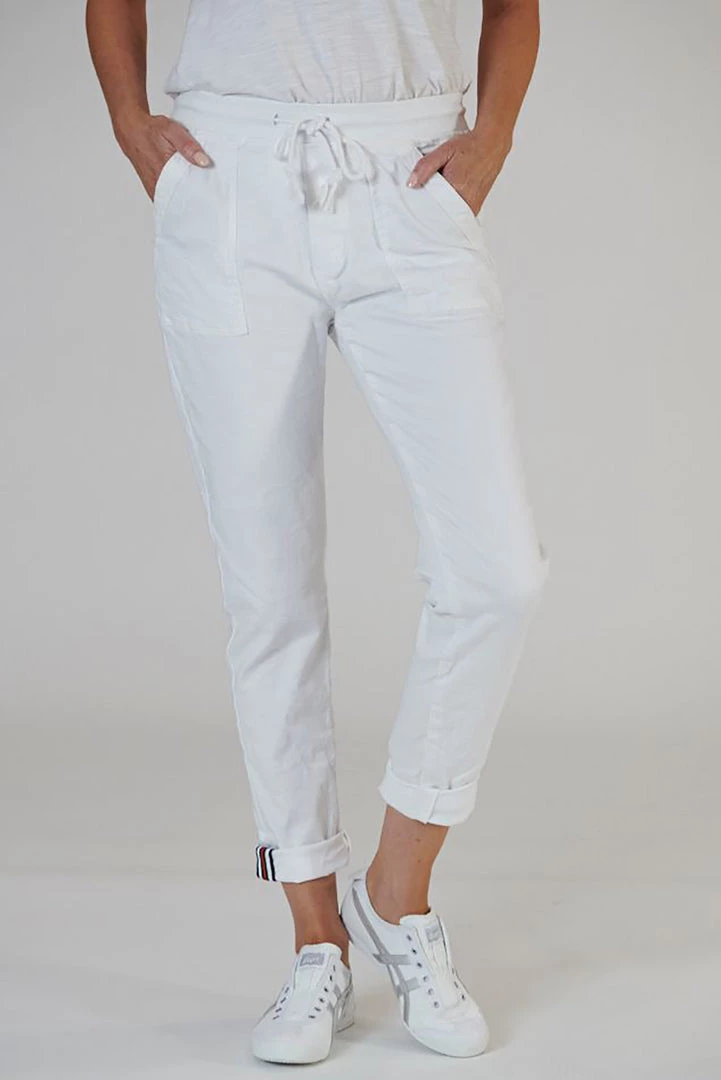 Looking for the perfect jogger pants for casual days? These Italian Star Jeans are simply perfect! Comfort is paramount in these elastic drawstring waist jogger pants which feature a hint of polo with red, navy and white stripes on the reverse side of the cuffs. We recommend that you team these with your favourite knit and a pair of red leather sneakers for a look that you own.Â