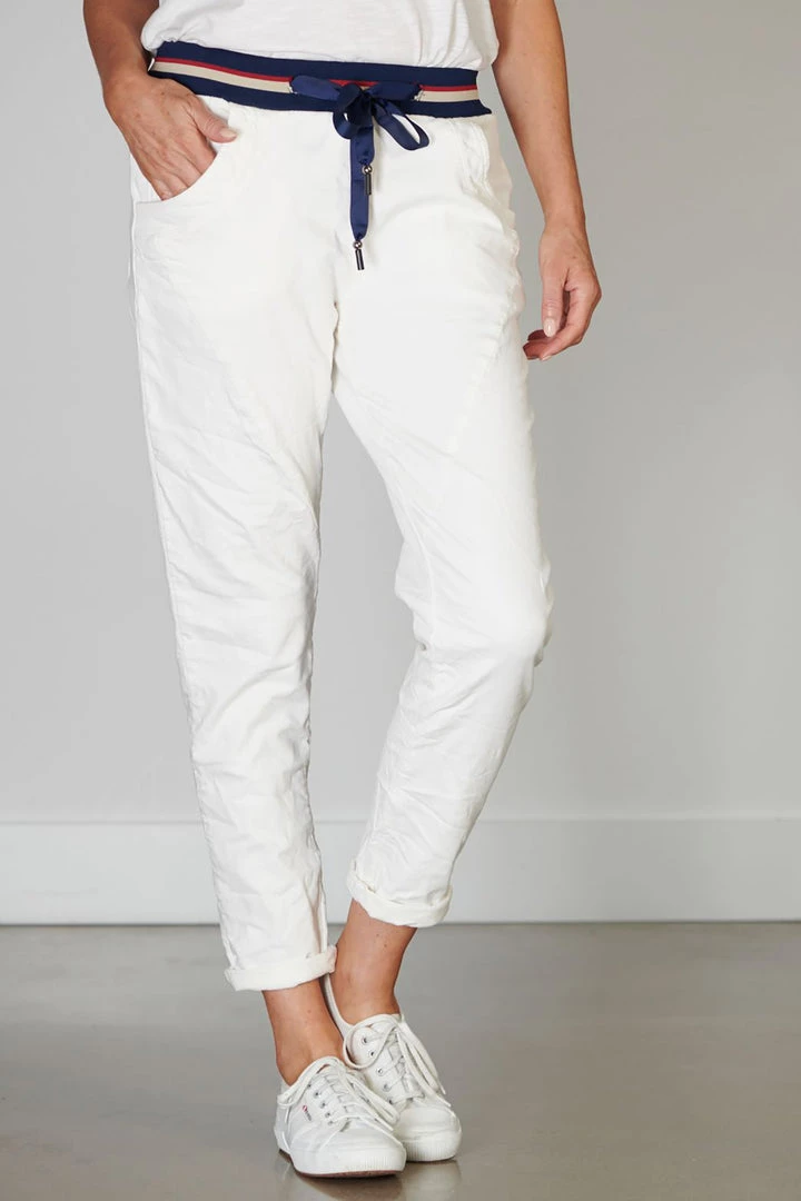 Designed and made in Italy by Italian Star these super stretchy, distressed-look jogger jeans in white are the ultimate in comfort. They feature ankle length legs, pockets and a contrast colour elasticised waistband. These jogger pants are versatile enough to wear with pretty much everything, and are perfect for creating a relaxed casual outfit.