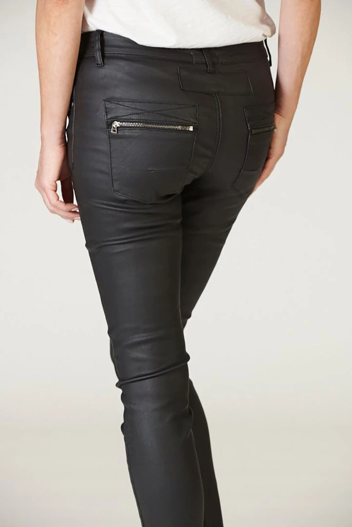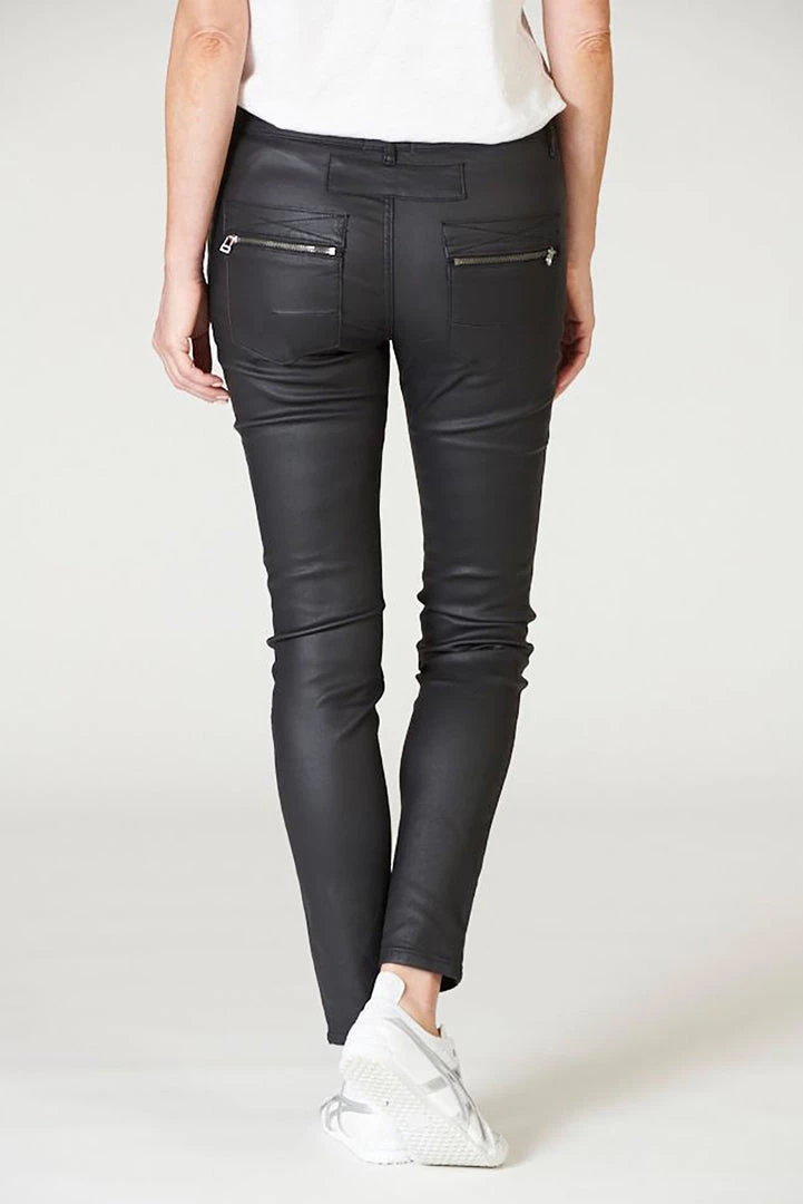 Love the look? The team at Pizazz Boutique love the look of these wax finish jeans. These Italian designed and made Jeans by Italian Star have a high sheen “leather” look. They are great teamed with a casual T and a contrasting leather sneaker or go up a level and team them with some black long high boots for a classic winter fashion look.