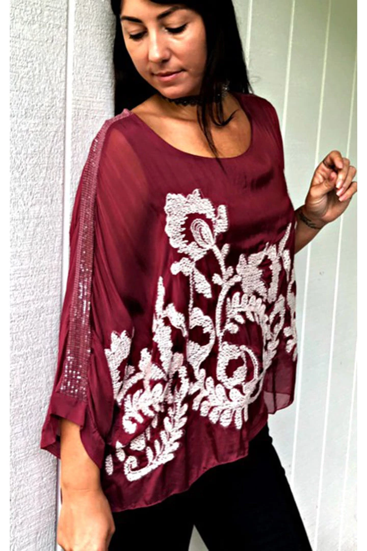 - Fabric: 100% seta, beaded motif throughout